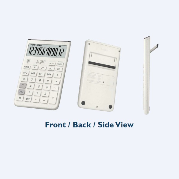 計算器機身 59%採用回收塑膠製成。 *回收材料百分比以塑膠使用總重量計算。 內建收縮式支架,可提升 8 度角度,讓您安坐操作按鍵更輕鬆。 收合支架後可完全平放,站立使用同樣便利。