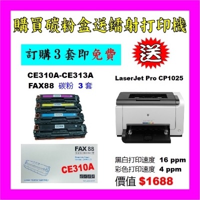 買碳粉送 HP CP1025 打印機優惠 - FAX88 CE310A-CE31...