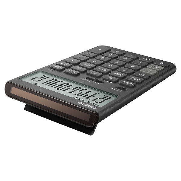 CASIO JT-200T-GY 12位纖巧桌上型計算機 太陽能環保計數機計算器機身 59%採用回收塑膠製成。 *回收材料百分比以塑膠使用總重量計算。 內建收縮式支架,可提升 8 度角度,讓您安坐操作按鍵更輕鬆。 收合支架後可完全平放,站立使用同樣便利。