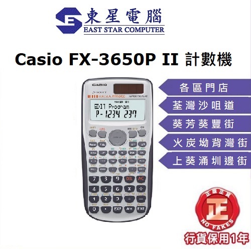 Casio FX-3650PII 涵數機 工程計算機 學生計數機(學校團體提供批發價訂購)學校集體訂購可享特價 如欲為學校團體進行訂購,請電60311172 或電郵:info@printer.hk 各區自提點:葵芳 荃灣 火炭 原廠正貨,憑單據可享受1年免費保修服務 HKEAA APPROVED 香港考評局接納為會考准用計算機 查詢:60311172 陳生