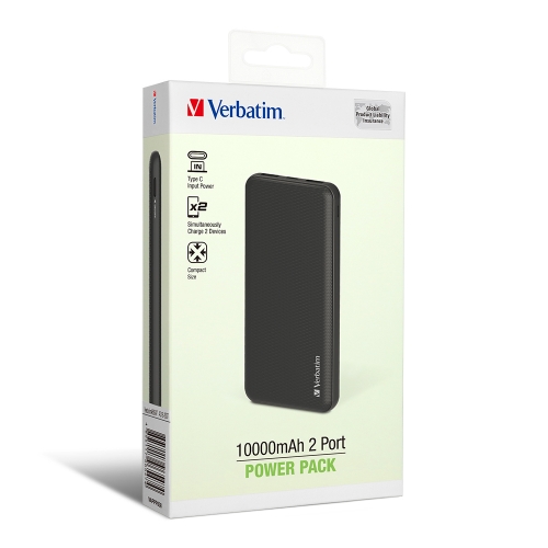 Verbatim 10000mAh 2 端口流動充電池 黑色 66547